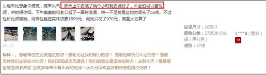 大家看红框里面的字,可以看到有很多的评论里面都涉及到了“是否容易安装”的问题。说明消费者很在意这个,所以这个店铺形成了“溢价因子”就是安装视频。我还认识一个卖自行车的,更干脆,收到自行车后,预约时间,在线视频指导,告诉你怎么装。这就是溢价!